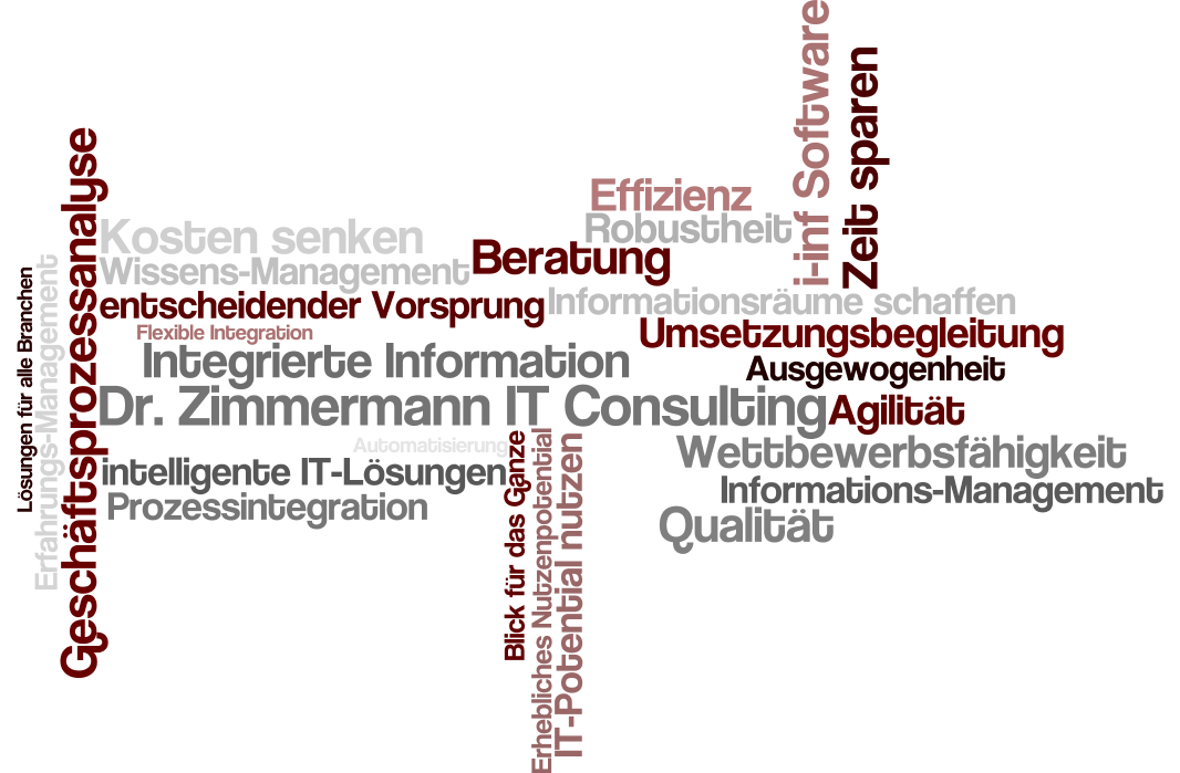 Wortwolken sind eine Möglichkeit, Schlagworte und ihre Wichtigkeit im jeweiligen Zusammenhang darzustellen. Die nebenstehende Wortwolke beispielsweise zeigt unser Angebot an Sie.