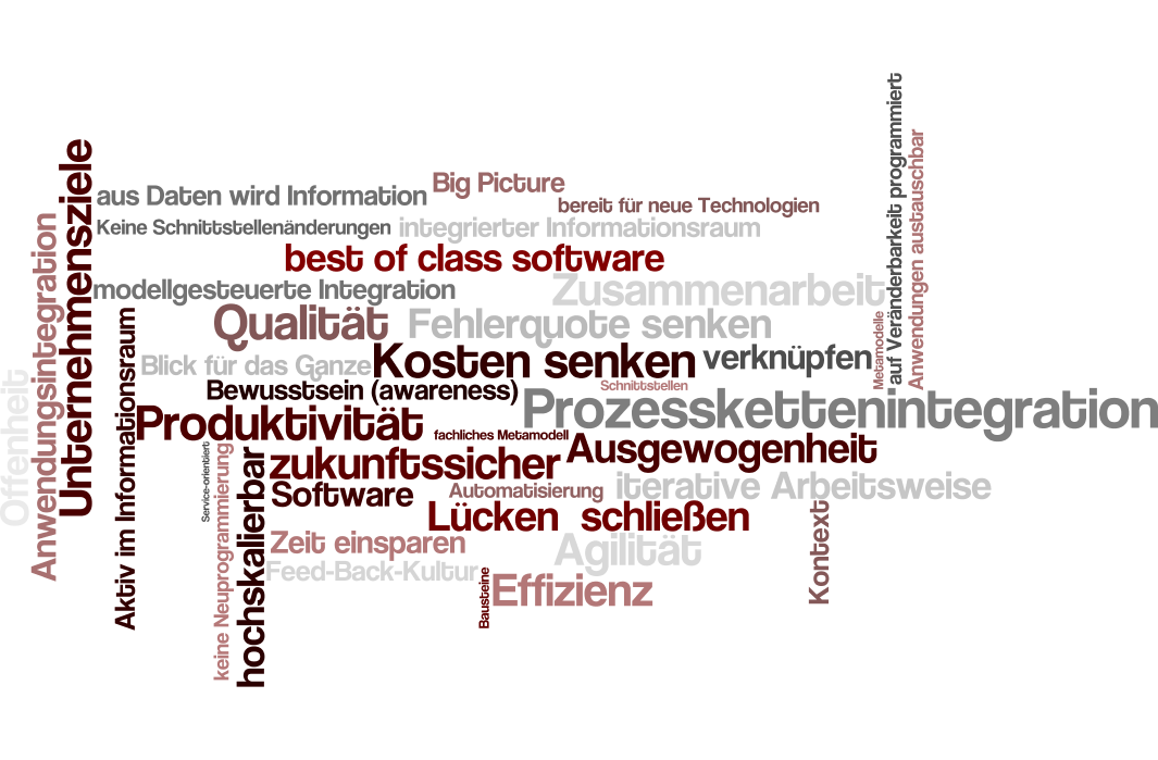 • Ihr Prozessleitsystem für geistige Prozesse: Die zentrale Steuerung der Software-Anwendungen durch IT-Modelle, beispielsweise über zentral bereitgestellte Bausteine verschiedenster Art,